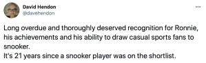 Ronnie nominated for SPOTY