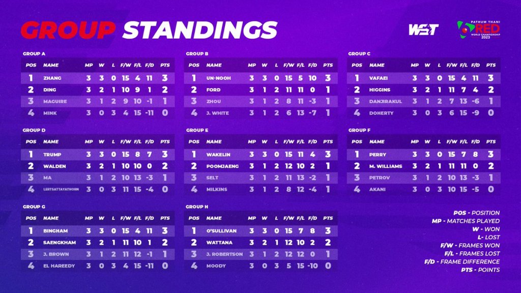 All this means that Ronnie finished top of his group, Group H, with James Wattana coming second.