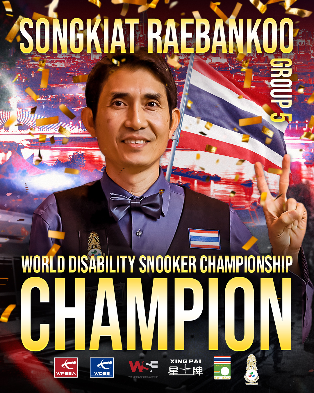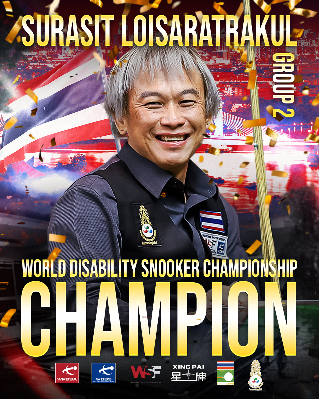 Organised by World Disability Billiards and Snooker (WDBS) and the Sports Association for the Disabled of Thailand under the Royal Patronage of His Majesty the King (SPADT), the historic event has seen 66 players across wheelchair, ambulant, intellectual, visual and deaf classification groups compete to become the first-ever world champions on the WDBS Tour.