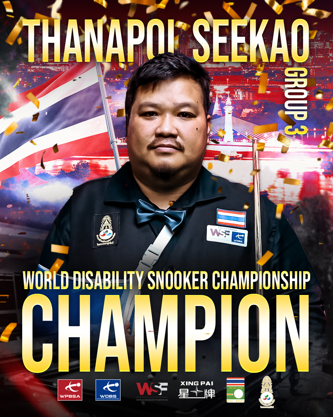 The inaugural World Disability Snooker Championship held in Nonthaburi, Thailand has now concluded with seven players claiming gold medals in their respective WDBS classification groups.