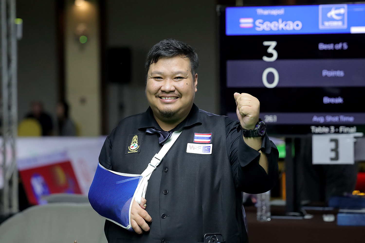 Home hero Thanapol Seekao made history early in the day as he became the first-ever WDBS world champion following a 3-1 final win against India’s Shayan Shetty.